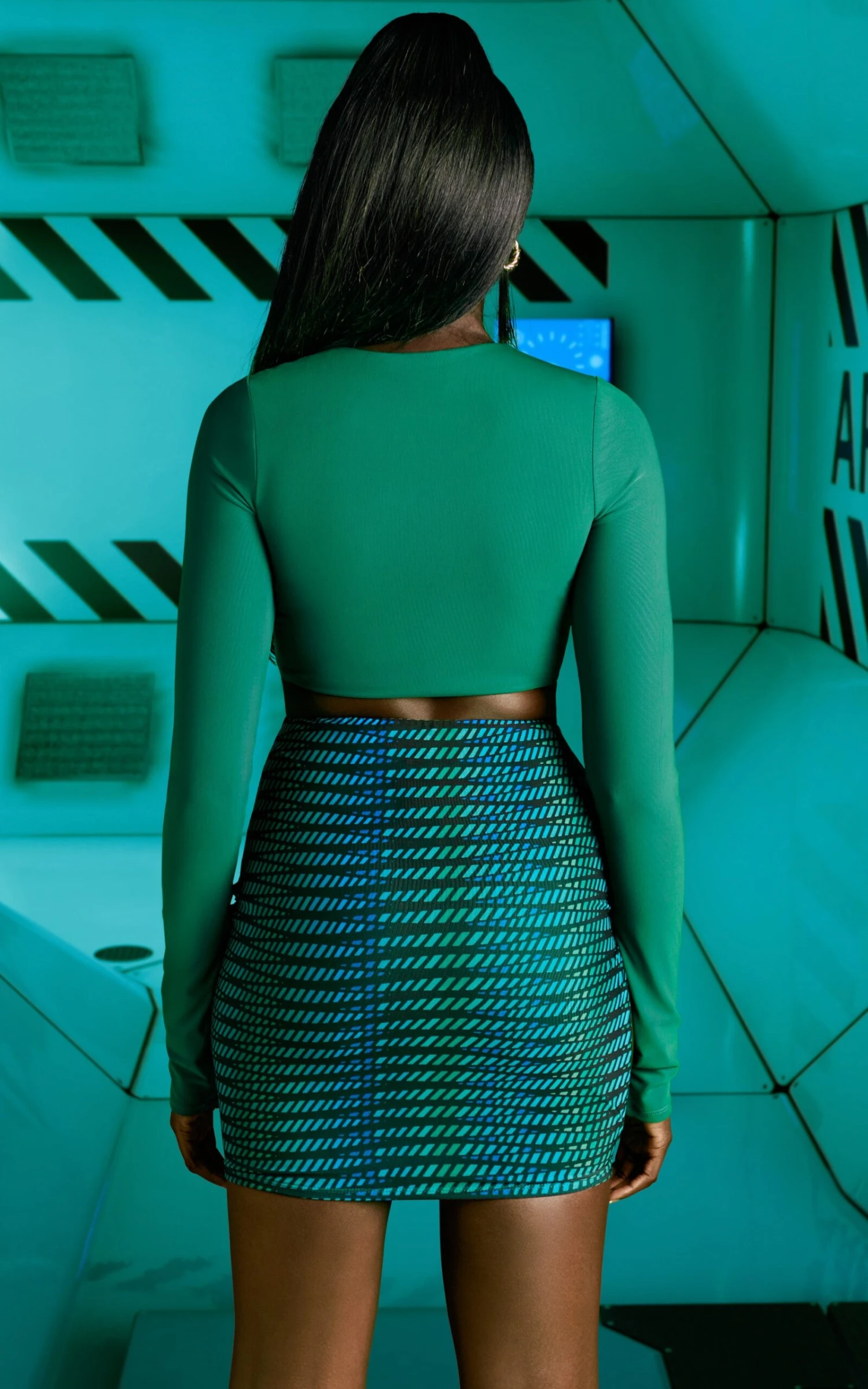 Radiate your unique aura in our vibrant Aura mini Skirt. Our high waisted bodycon skirt features cut out detailing and the smooth, soft mesh fabric gives this mini skirt an effortless chic finish. Pair with our high neck bodysuit or long sleeve crop top for a heavenly look.